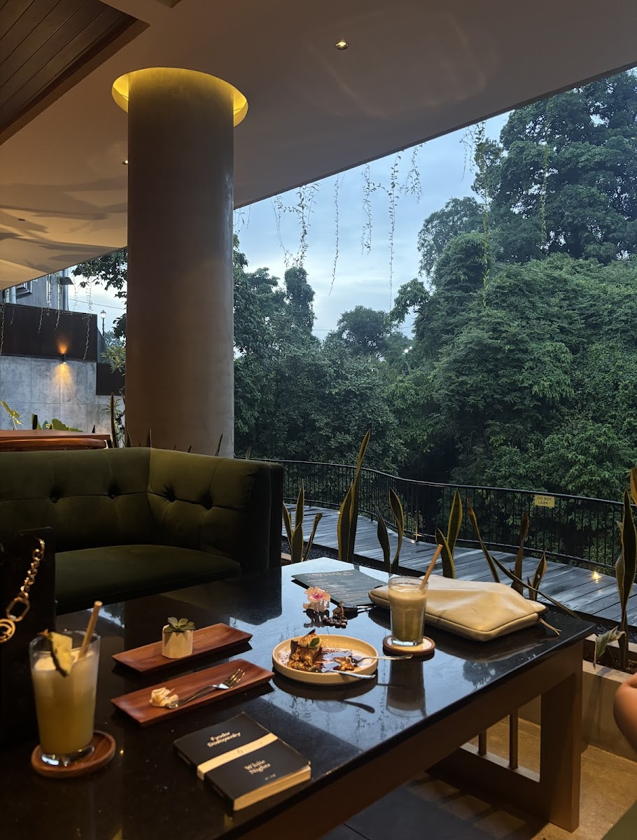 You come here for the vibes, not for the food. The foods and beverages are standard, but the vibes is recommended for romantic dinner, celebration, proposal. The interior and ambience is excellent. The food is good, but honestly, with that price, it's not too worth it. I ordered gurame and pork ribs, tiramisu, cake something that taste like coffee, virgin mojito, and saphala blue. With the same price for the food, I can get better portion and taste at different restaurant. But like I said, you come here not for the food, but for the vibes. They have a table with sofa and it has nice access to the view, you can sit there with spending minimum 350 k rupiah, which I chose because I came at the dinner time and other tables are full. You can't book in advance if you are only 2 people. So I spent around 500 k for 2 people (2 foods, 2 drinks, and 2 desserts). The tiramisu is not for sweet tooth like me, because it's too bitter, but I still can enjoy it. The the toilet is nice, I like the vibes. Just one suggestion for the restaurant, perhaps for the gurame, you can separate the rice from the gurame, vegetables, and the sambals, because the wooden plate is too small. And for the sofa table, perhaps you can adjust the lighting, so that the light doesn't fall directly above the head. Trust me customers want good photos more than good foods if they sit there. I took a photo while sitting on the sofa under the monkey decoration, and the lighting was bad. So we move to the other side of the sofa, and the lighting was better from that side, but all staffs were busy at that busy time, so we didn't request to re-take a photo.