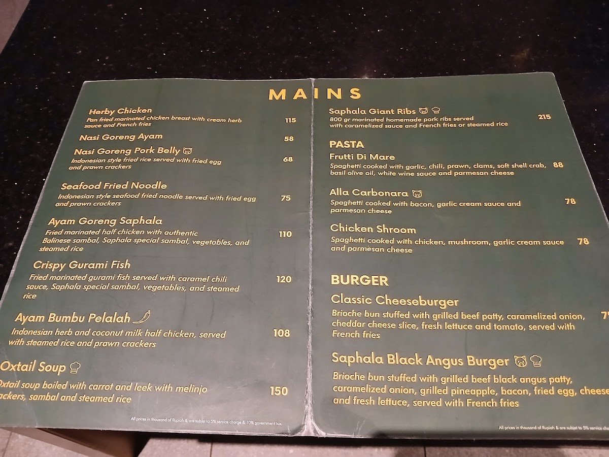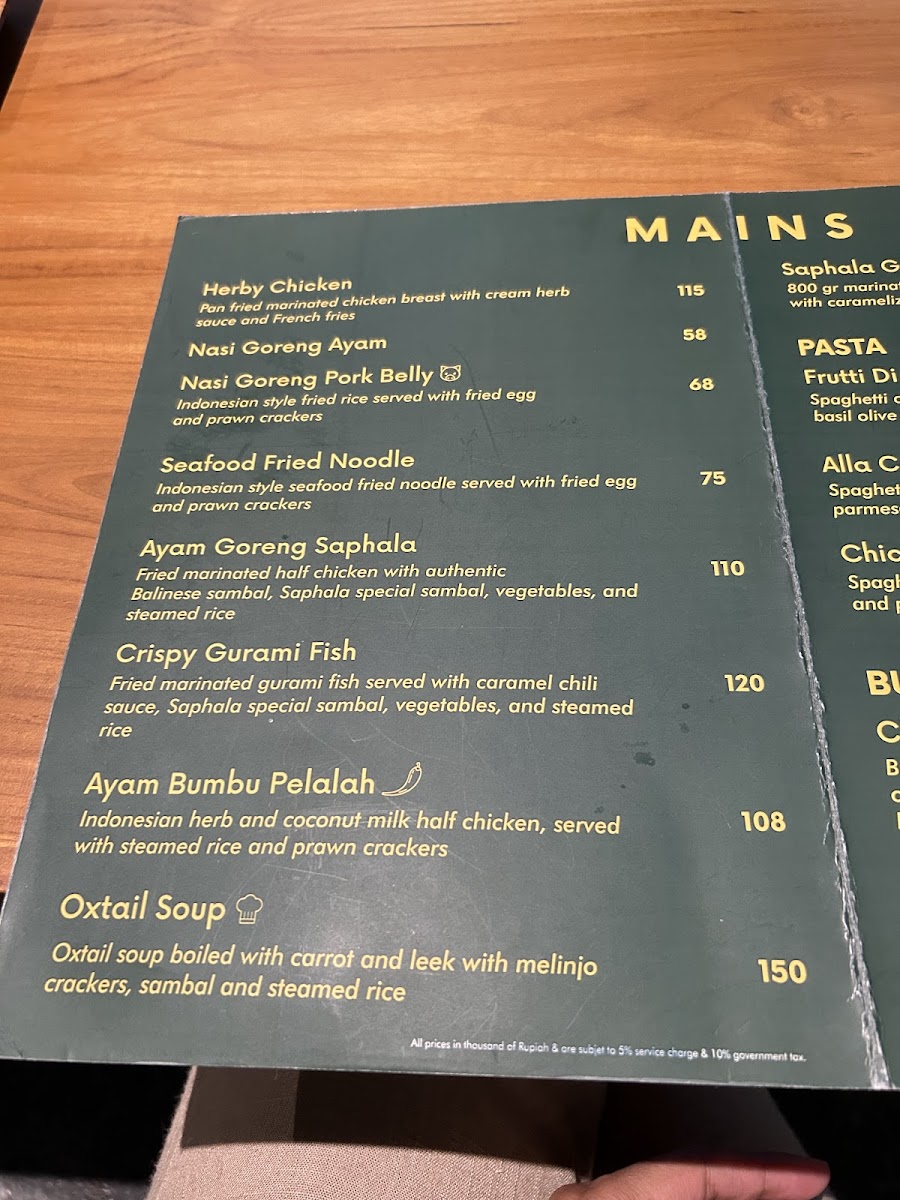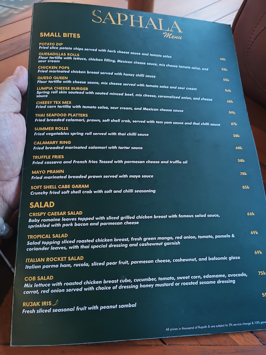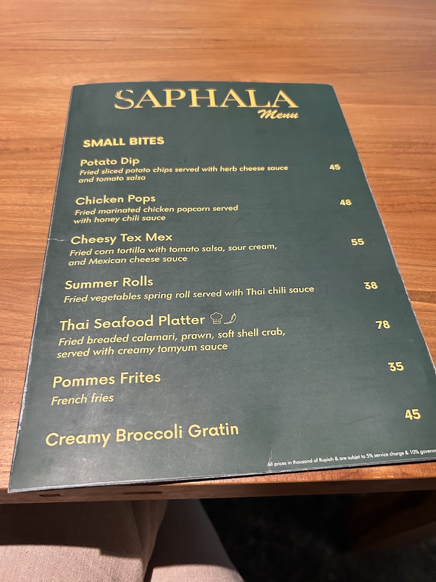 Saphala Bali Menu