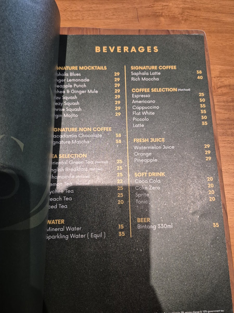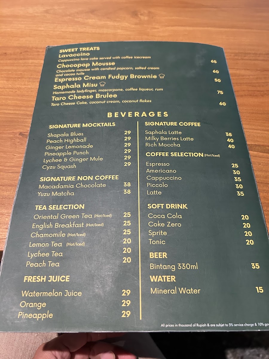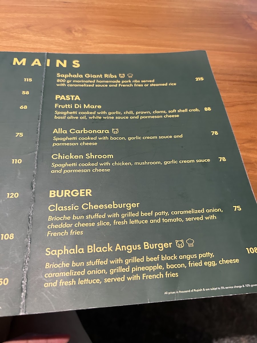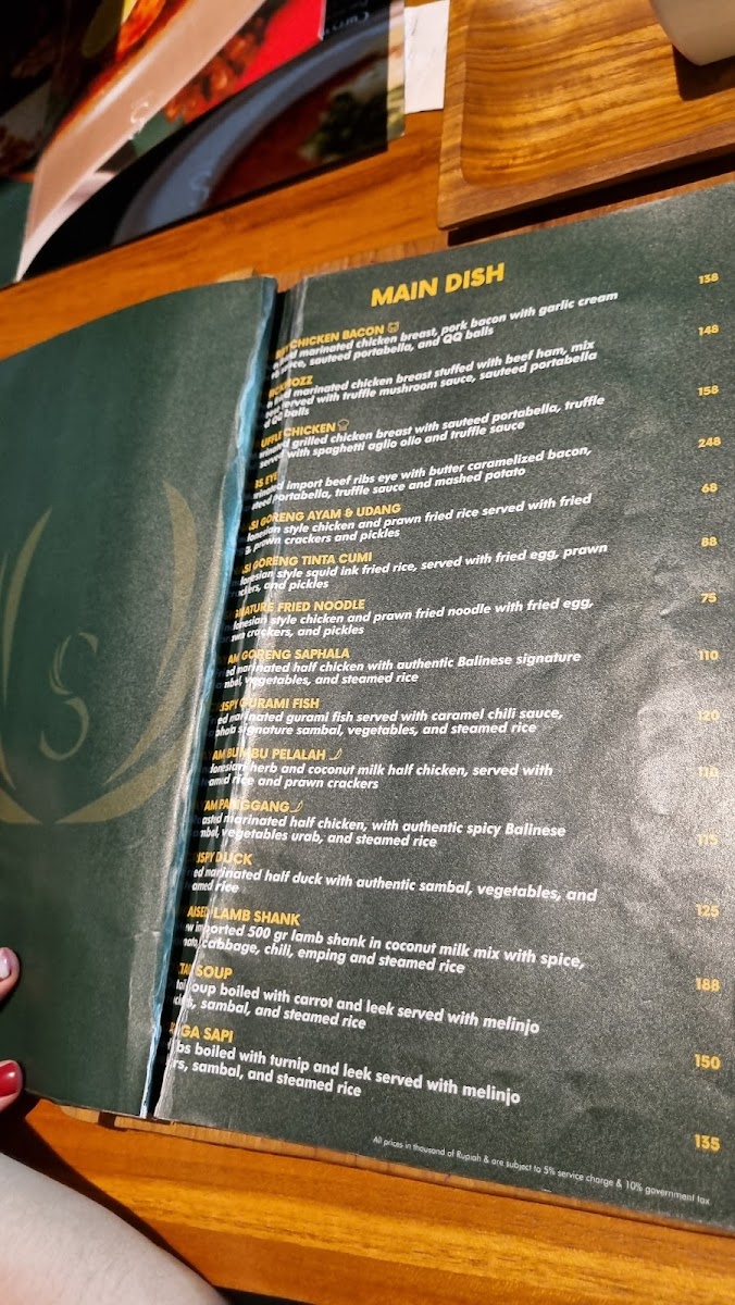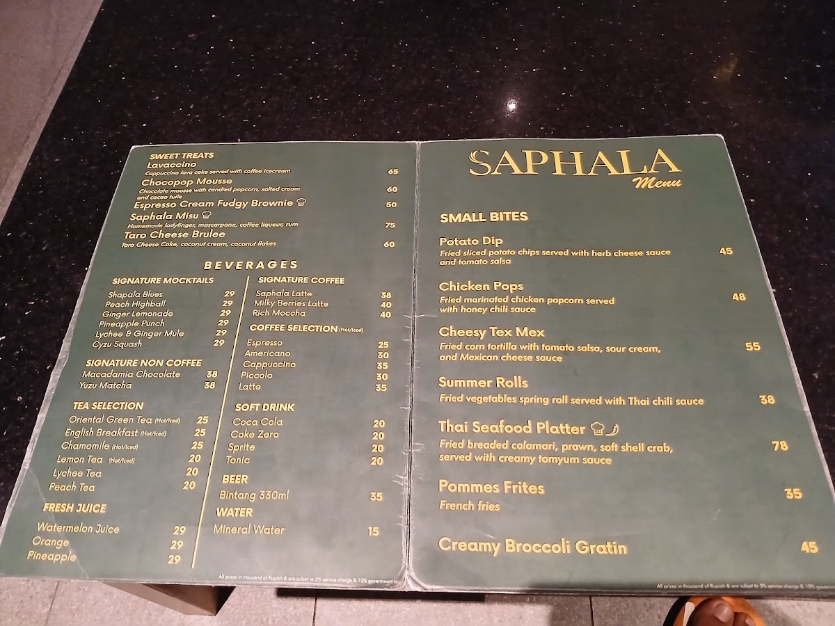 Saphala Bali Menu